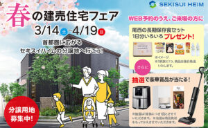 【セキスイハイム】《期間限定3/14〜4/19》春の建売フェア|来場で豪華抽選&プレゼント実施中