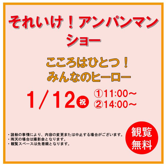 【2026年1月12日(祝)】それいけ!アンパンマン ショー
