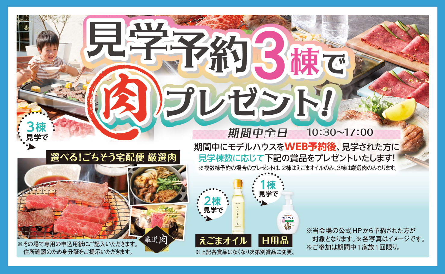 【2025年11月:期間中】見学予約3棟で肉プレゼント!